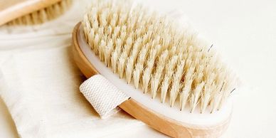 Dry body brushing helps shed dead skin cells (and encourages new cell renewal), which results in smoother and brighter skin. It assists in improving vascular blood circulation and lymphatic drainage.
